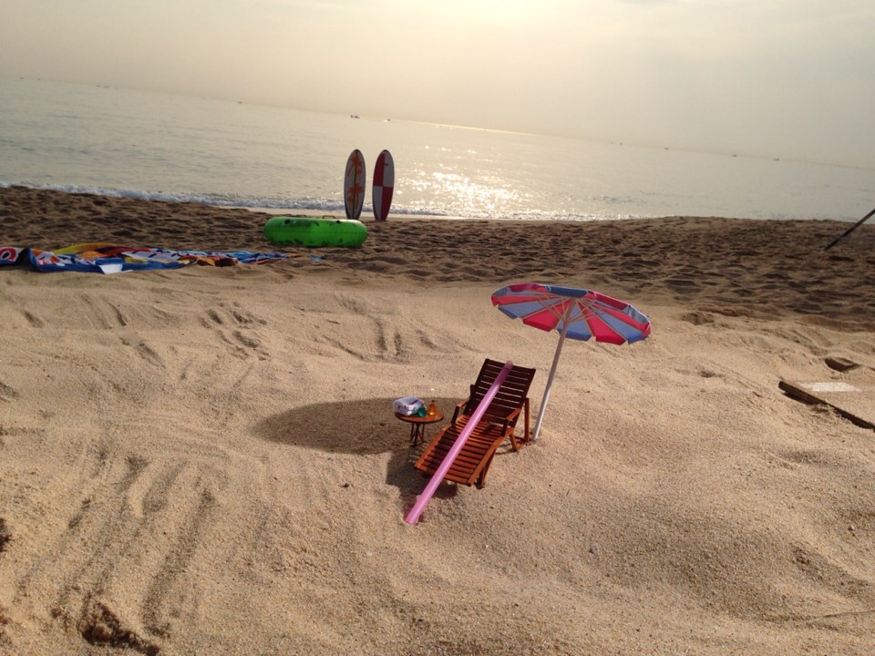 베스킨라빈스, 빨대, 스푼, 썬베드, 파라솔, 선그라스, 3d프린트, 핑크빨대, 축소, 디오라마